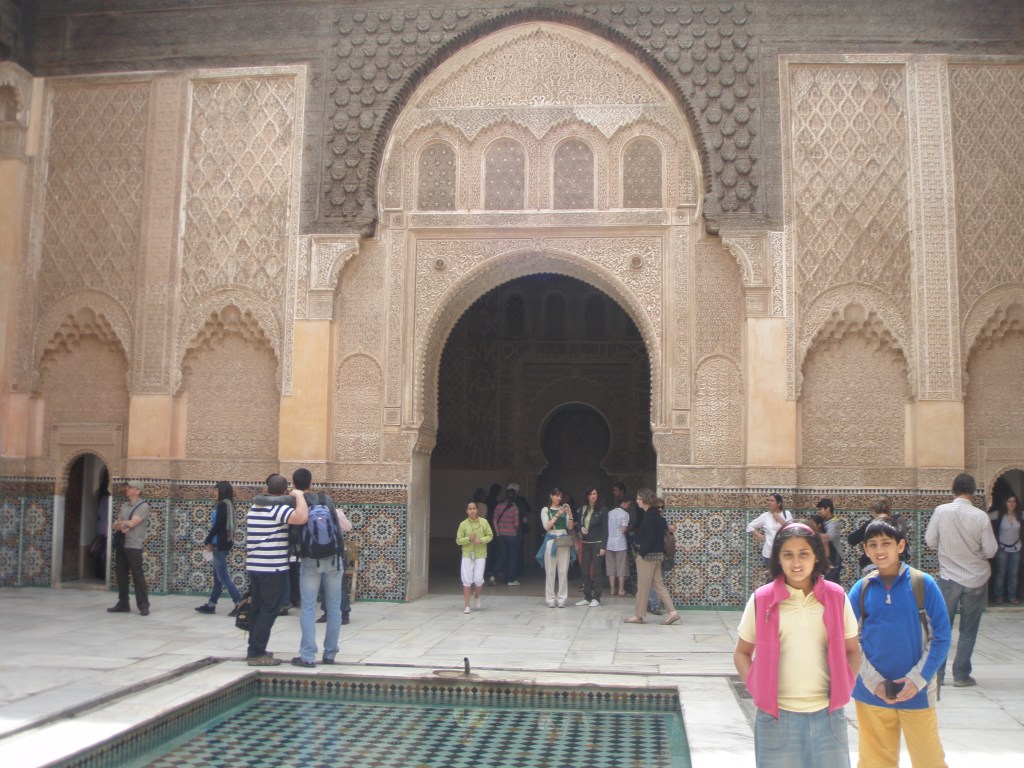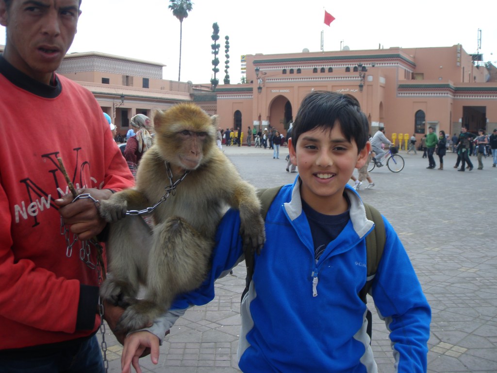 I am not sure where to start the story about the magnificent journey to Morocco, its sights, its sounds, its colors and contours all so intoxicating to the senses. We started our adventure in Marrakech, where we spent a couple of days just soaking in the place and the people, all the local dishes and the fabulous marketplaces. It reminded me of a Europeanized Old Delhi. The stark contrast with Old Delhi of course being the absolute cleanliness of the environs despite being in the middle of a marketplace or public square. See below my American pre-teens in the Marrakesh Souks or marketplaces with all its exotic wares and wildlife: