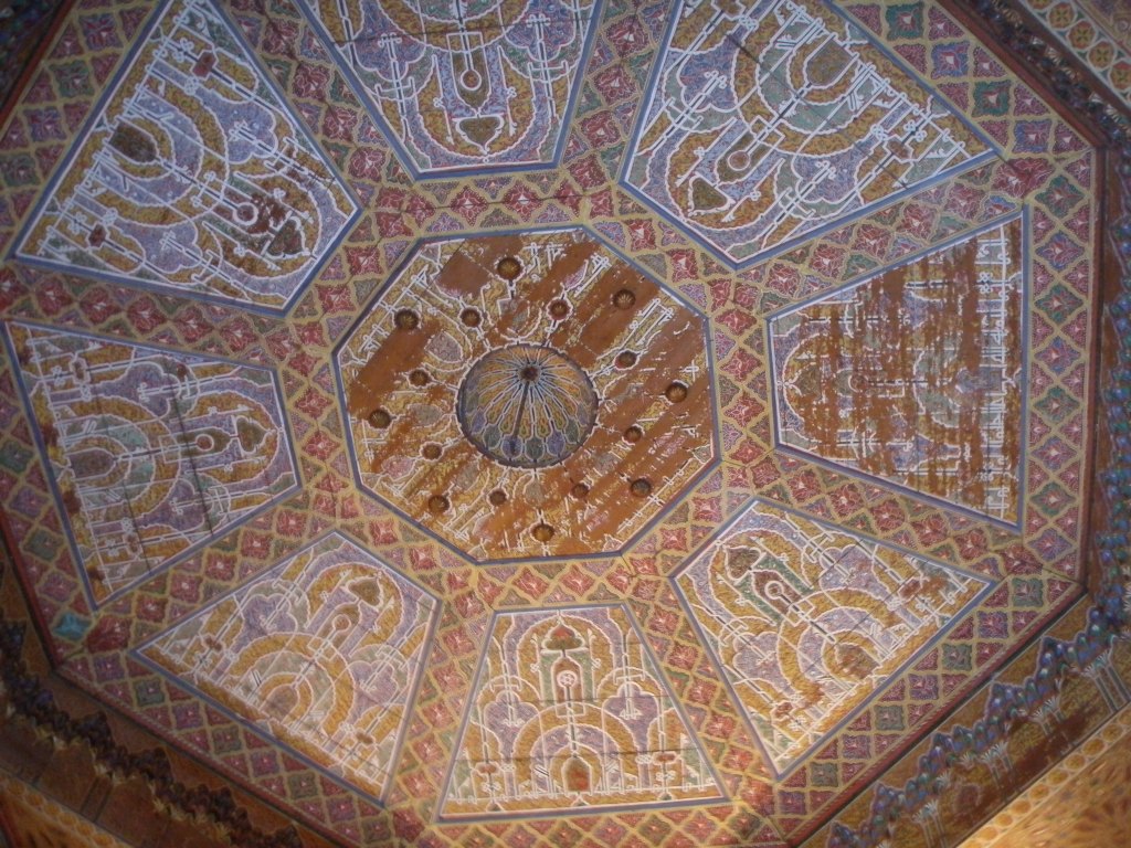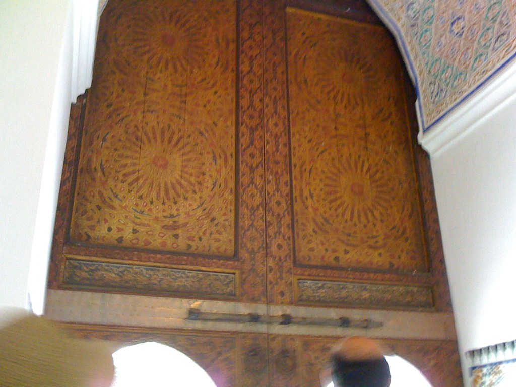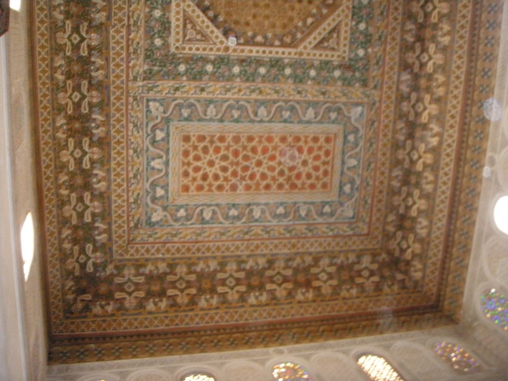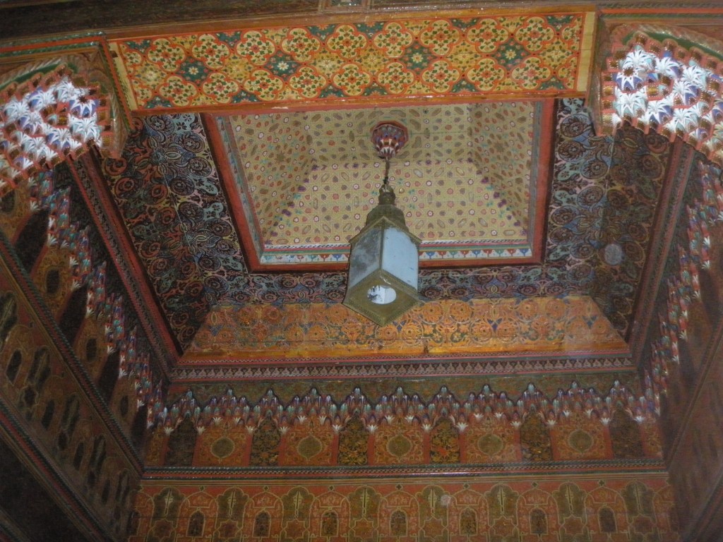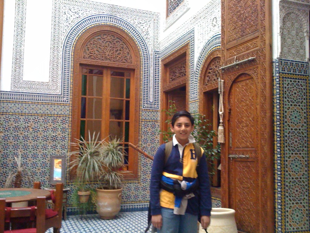 Well, that was a pivotal, turning point of my life, for this was no ordinary cactus bite! The cactus had somehow mixed the earth with my blood and I could see, i could see everything, all the designs and colors that had eluded me (in my last email to you), the beautifully inlaid motifs, the intricate but unfamiliar patterns on the walls and the ceilings of the Riads, all came to life. So, when we finally reached Fez, and our Riad/hotel with (the much desired hot flowing water, food, soft beds,) a magnificent courtyard with the most intricate tile and woodwork i had seen in a home and of course with a gently flowing marble fountain in the center, I sincerely believed we had reached paradise, jannat! See images of our awesome Riad in Fez below: