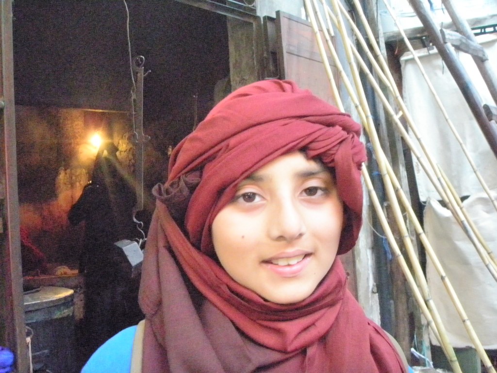 On our road to a 1000 Kasbahs, we stopped momentarily to admire the thick foliage surrounding the oasis in the desert. It was during one of these stops that a little Moroccan boy selling handicrafts at the corner of the road peered into our car and right at Dhruvum and stared. He then threw one of the woven reed handicrafts which he had in his hand onto Dhruvums lap. It was a cigogne, a stork, a bird that the little boy had seen around him nested up on ruins and minaret tops, and this image must have captivated him year after year, which he recreated using his reed strips to make an image of that stork. When he peered into the car and looked at Dhruvum, he probably saw in him a bird from a land far far away, a long migratory bird with the eyes of the Crane and the wings of the Stork and so out of all the handicrafts he had in his hands, he threw into the car, onto Dhruvums lap his expression, his representation of the bird that must have captured his imagination. It was a beautiful poignant moment, as the two boys, from two worlds, of a similar age, looked at each other and smiled. See Dhruvum below in the traditional Shesh or headscarf for men: