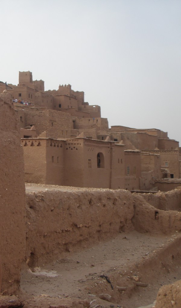 Ait Benhaddou this 16th century Casbah was like an incredible illusion that had arisen from the desert, an immaculate apparently deserted fortified city, a UNESCO protected fortress, situated atop a hill bordered by a stream in the middle of nowhere and nothingness. See below Ait Benhaddou:
