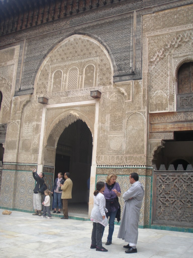 Still gritty and grimy from the sand at Erg Chebbi, we wound our way to Fez. Me, being myself, I demanded that we make several pit stops and I clambered over loose rubble steep hillsides and barren ground to “go”. On one of these adventures, attempting the shortest route possible up the hillside to the highway and the car, I stumbled and fell right into the middle of the only clump of cacti (or any vegetation) for miles. Howling, I made my way back to the car and to a grumpy unsympathetic crew who did not want to stop yet again (its got to be their elastic bladders…10 hours!).