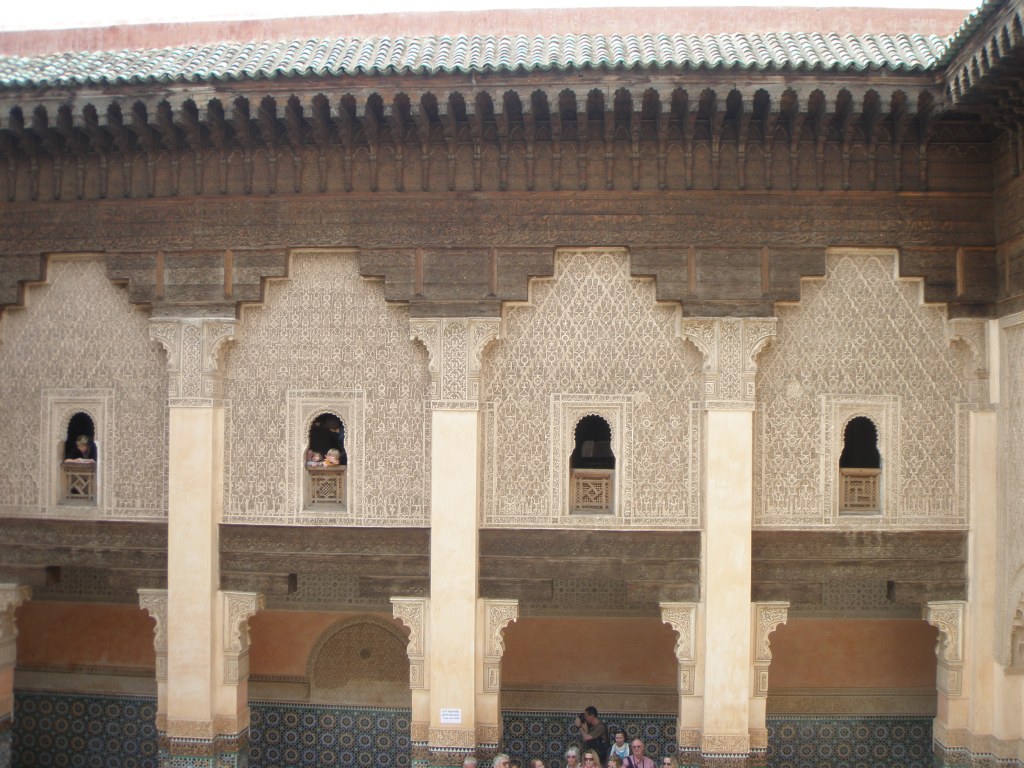 Then of course there was the visit to the Saadian tombs and the Bahia Palace, I was left breathless by the beautiful craftsmanship, fascinating motifs, representing the flora and fauna from their environs; an expression of a people so unique and distinctive. I realized then that I had slipped into a parallel universe, one which in so very many ways was similar to the world I was familiar with, the central and south asian cultures and their Islamic heritage with their unique expression, detailed tilework, precious inlays in marble, fountains and courtyards, Quranic verses interspersed with detailed motifs and yet the details of the designs upon a closer look were from a universe apart, as distinct as the flora and the fauna that surrounded these two worlds several continents apart. I struggled to find the familiar pomegranate, the amla, mango seed, the creepers, the rounded outlines of the flowers perhaps a familiar beak, but none was in sight. Despite the familiar outlines, the core represented another world, another continent, North Africa, the with its unique habitat, flowers, fruits and life reduced to its unrecognizable geometric skeleton. Brilliant, fascinating but indiscernible to my eye, used to a vision from a distant land…