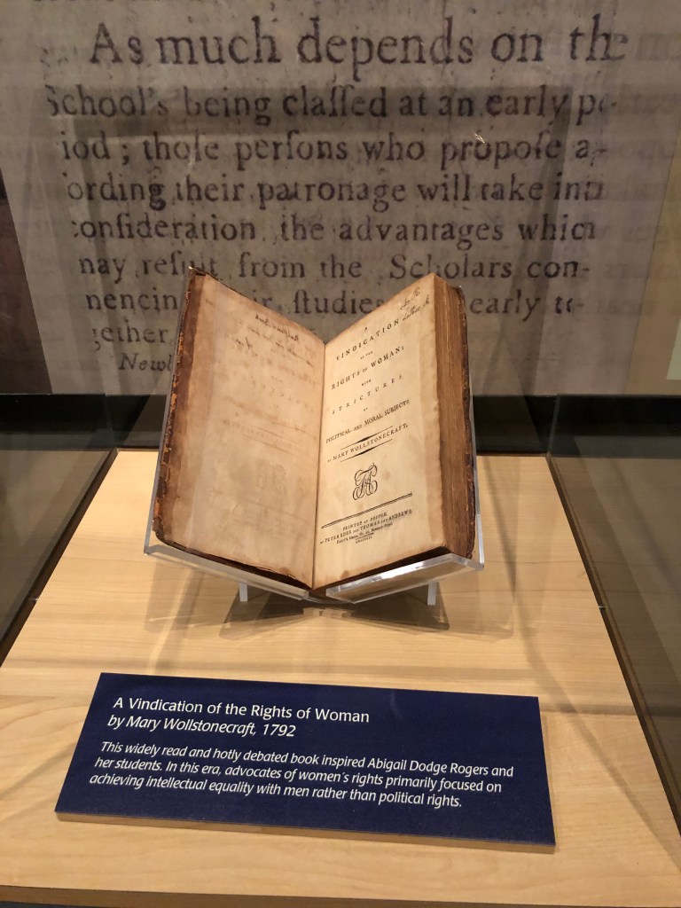 See below a pic from the National Museum of American History in DC of Mary Wollstonecraft famous book The Vindication of The Rights of Women, the British feminist author who championed for female education and ability to earn an independent living was the mother of Mary Shelly who authored the book Frankenstein an idea which arose during a game of stories prompted by Lord Byron during a dark and stormy night in a villa in Geneva, Switzerland. Yes, all roads lead to Geneve!