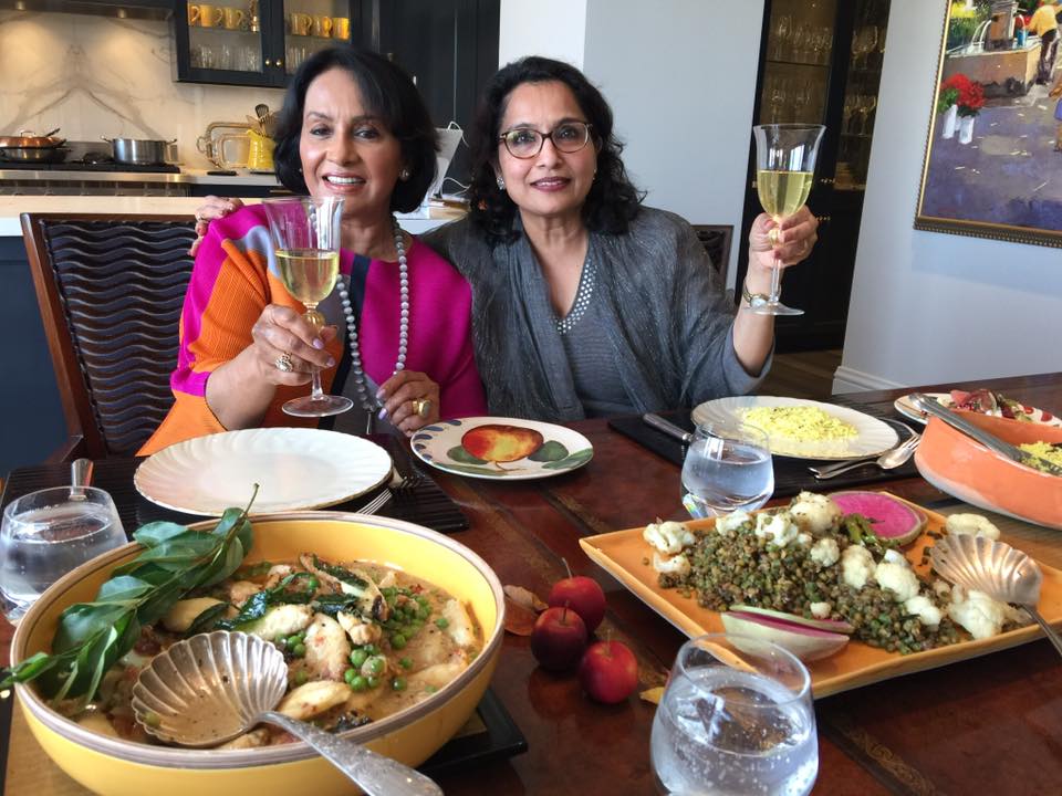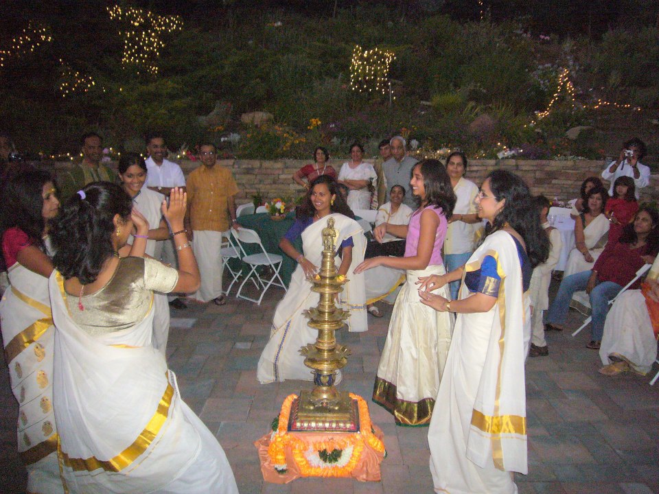 See photos pasted below of the vibrant and cacophonous Kerala contingent in The Bay Area, California draped in silks of vivid hues, bedecked in Indian gems with eyes rimmed with kohl celebrating Onam, Diwali and California life with Cal-Kerala cuisine. See my friend Poornima Kumar below with friends and family celebrating Kerala traditions in California (Photos curtsey Poornima Kumar):