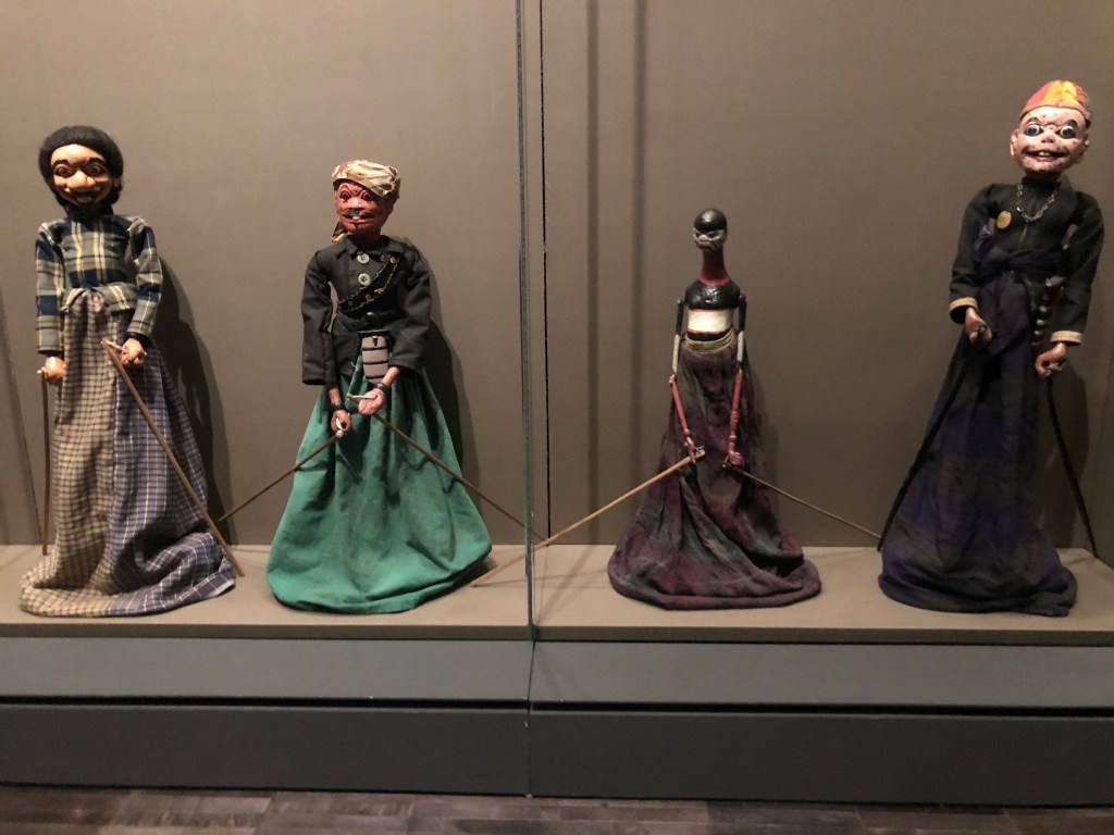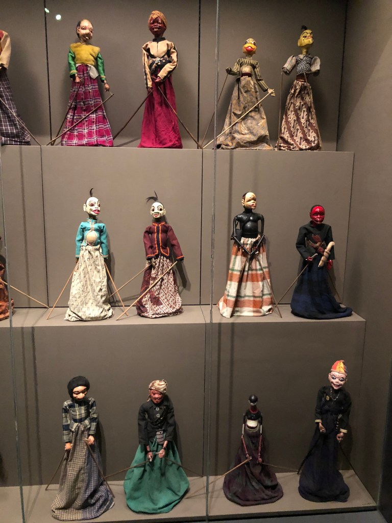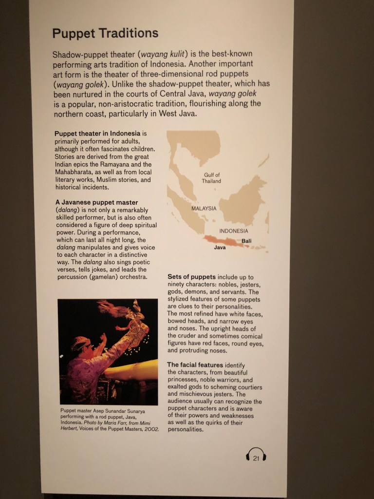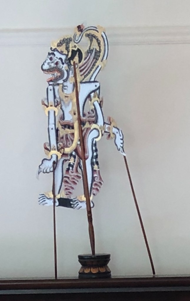 See below the Indonesian shadow puppets (Wayang) at the AAM in San Francisco used to tell the epic tale of the Ramayana in Indonesia (and my puppet of Hanuman The Monkey God from the AAM SF):
