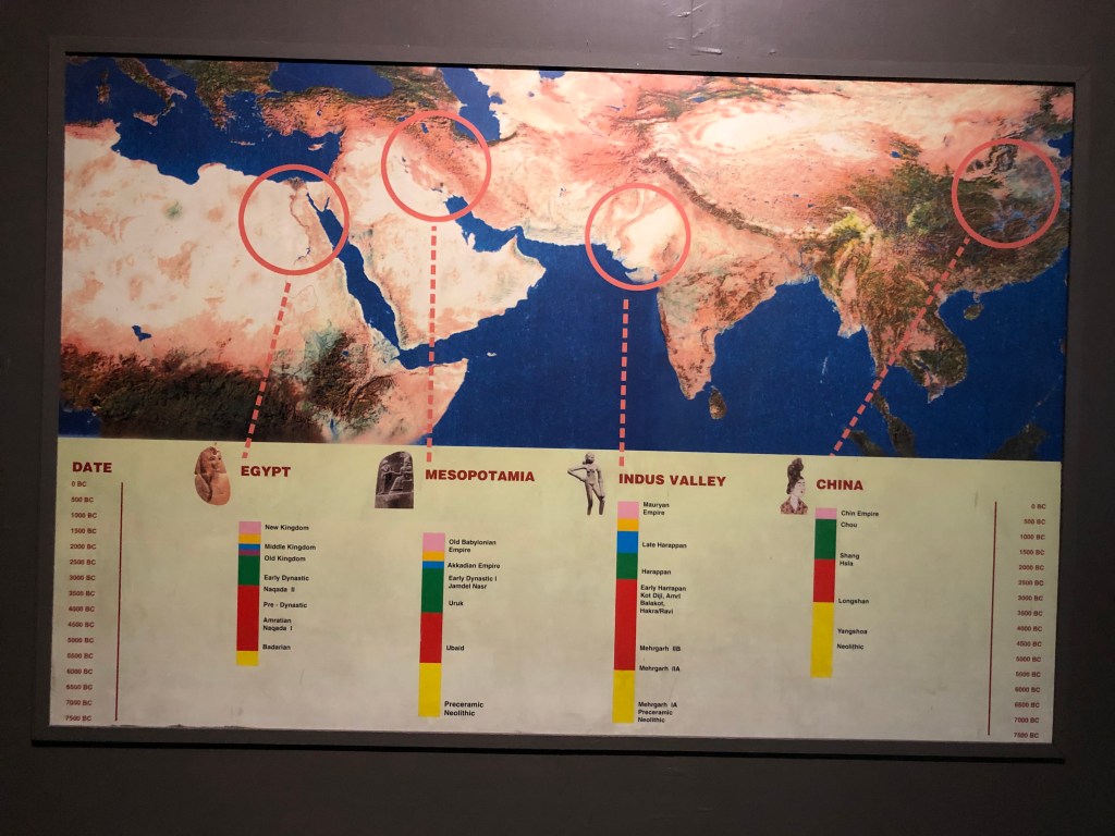 Some Images of The Indus Valley Civilization from The National Museum in New Delhi, India: The Dancing Girl, An Indus Seal, Poster of all the major ancient River Valley Civilizations, images of major cities like Harappa and Mohenjodaro.